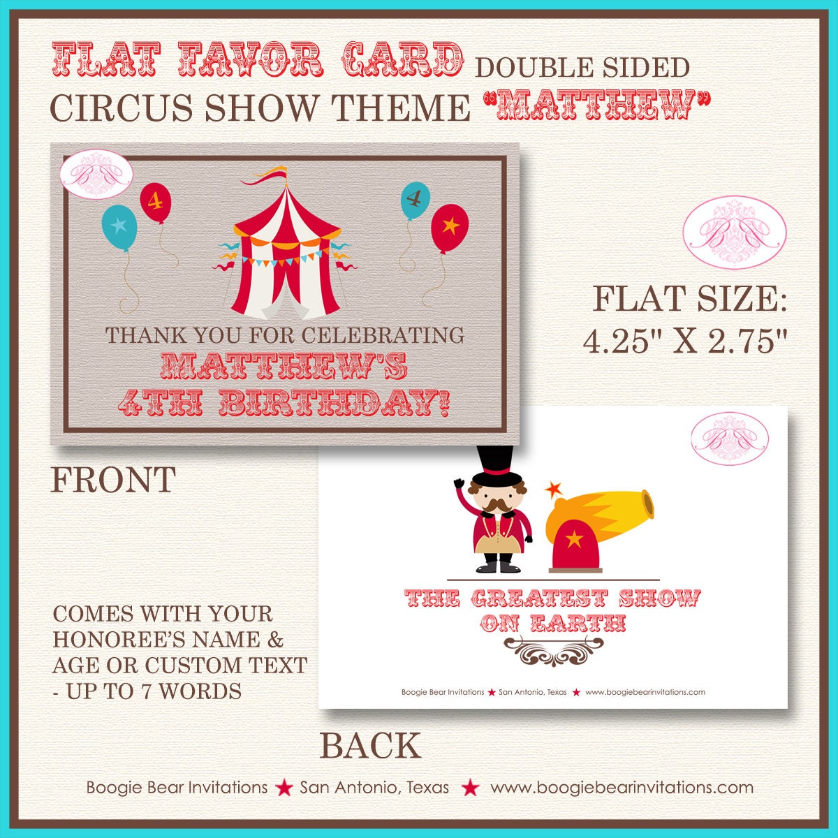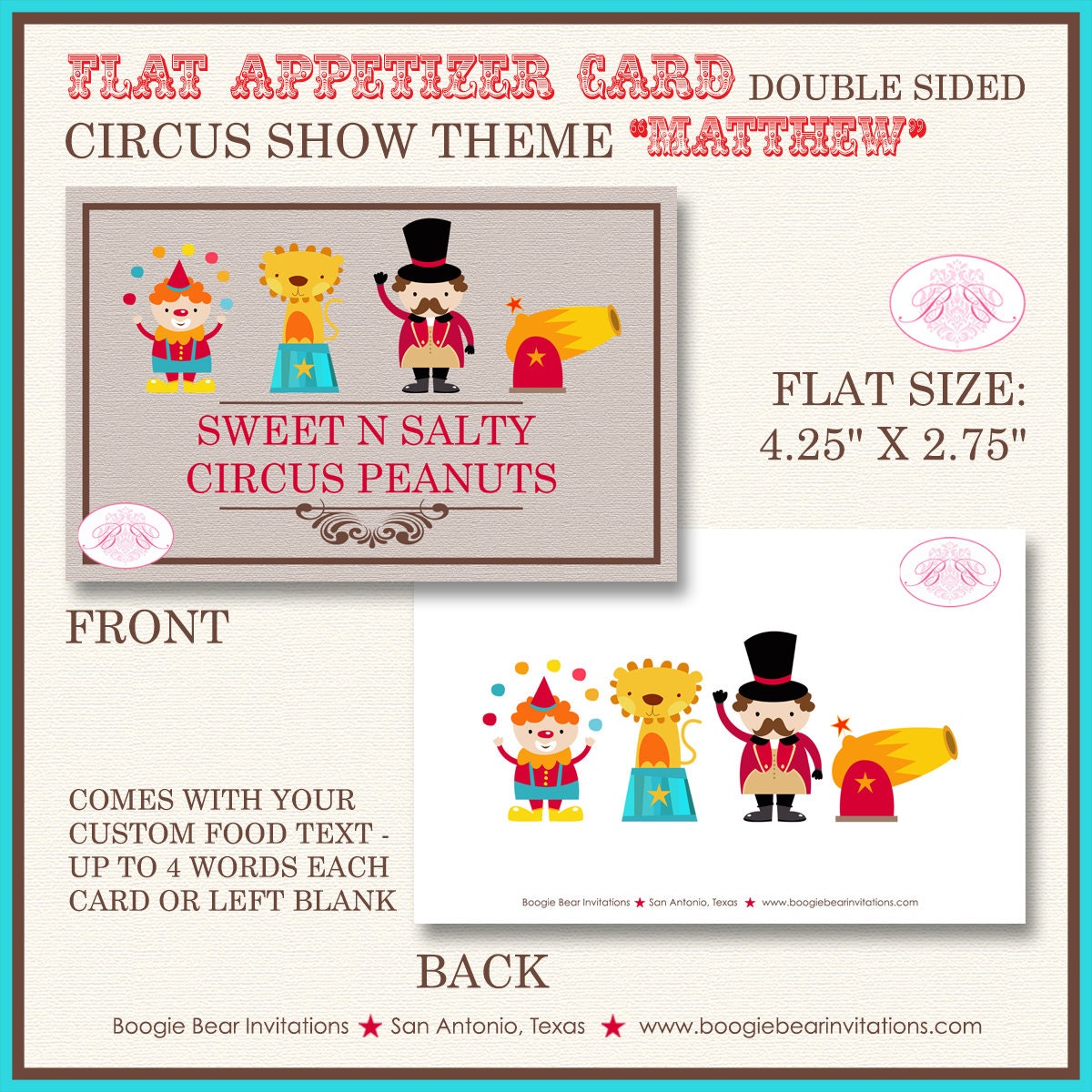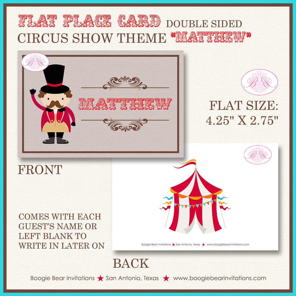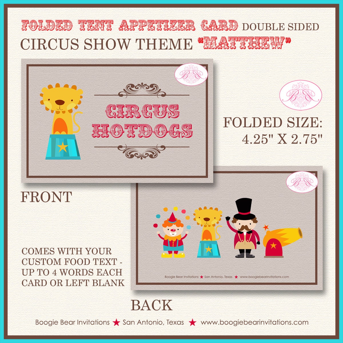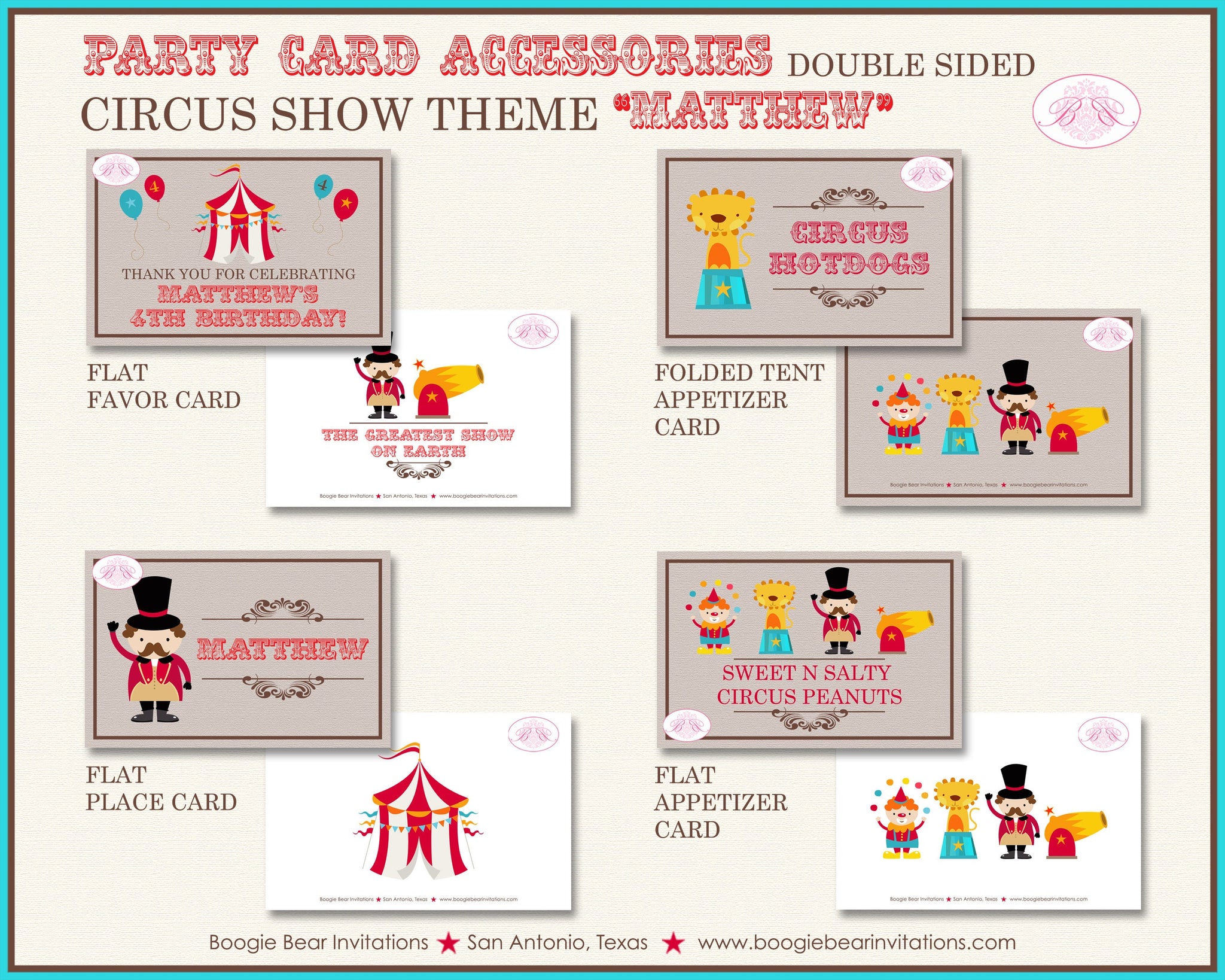 Big Top Circus Birthday Favor Party Card Tent Appetizer Place Animals Showman Greatest Show Earth Tent Boogie Bear Invitations Matthew Theme