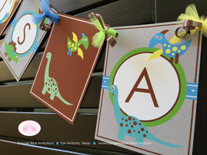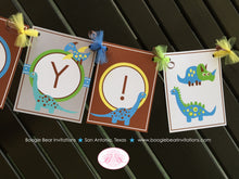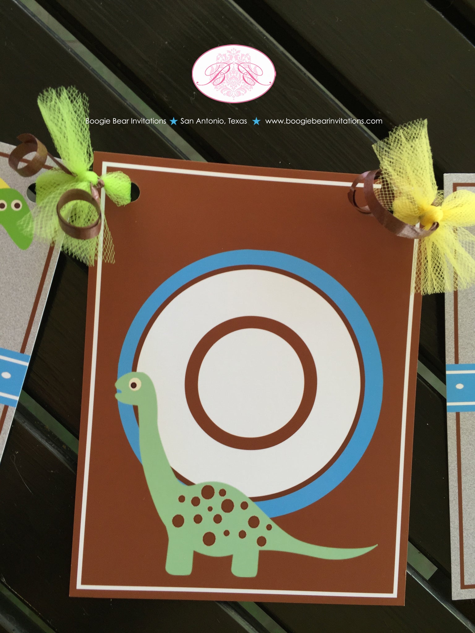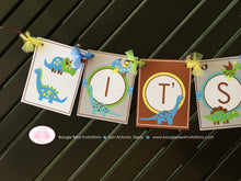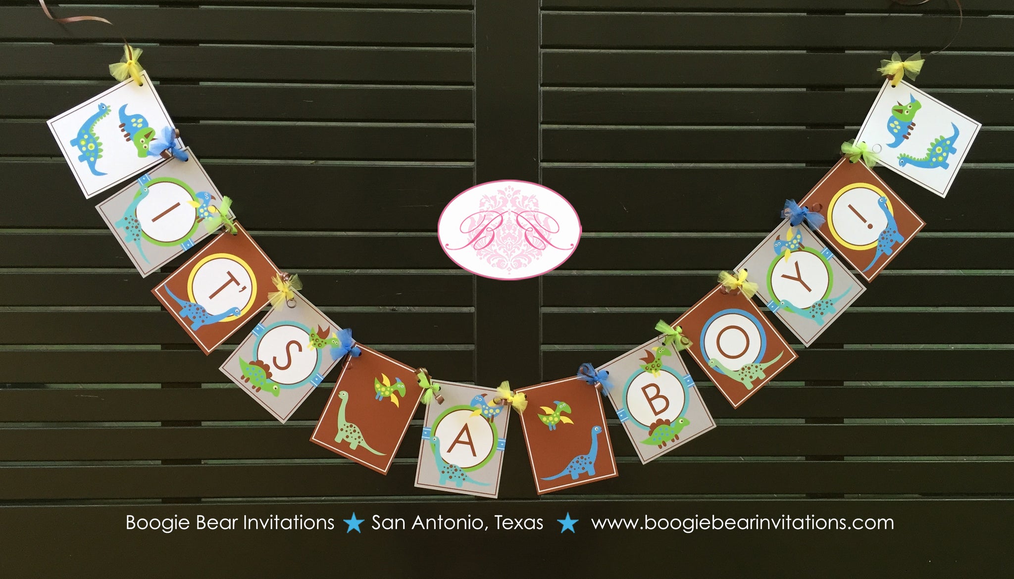 It's a boy! This super cute baby shower banner will be a perfect addition to your blue dinosaur party theme. This lovely banner can say any phrase you would like, such as "Baby Boy", "It's A Boy", "Welcome", and much more!* This fun dinosaur banner is hand tied and bound with alternating blue/green/yellow tulle and brown curling ribbon, so fun!
