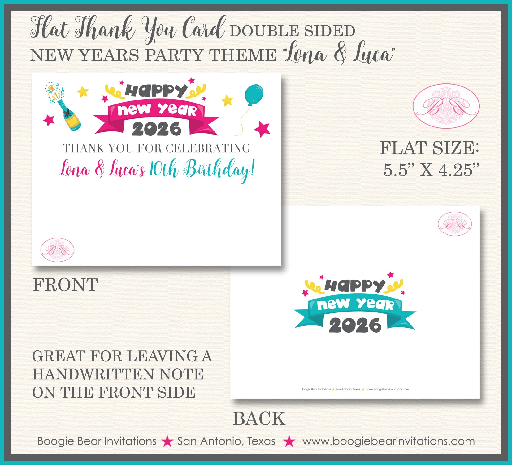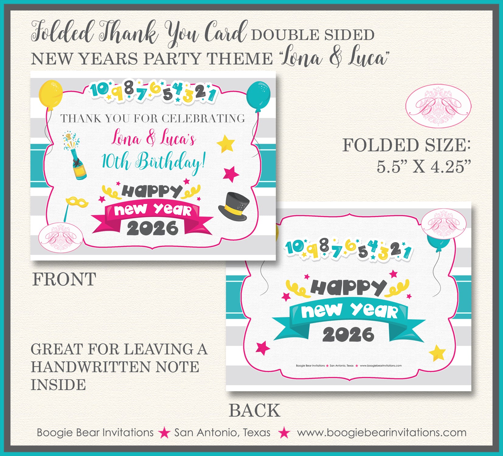 Happy New Year! These awesome thank you note cards come with your personalized text for a cool New Years party. White envelopes included.