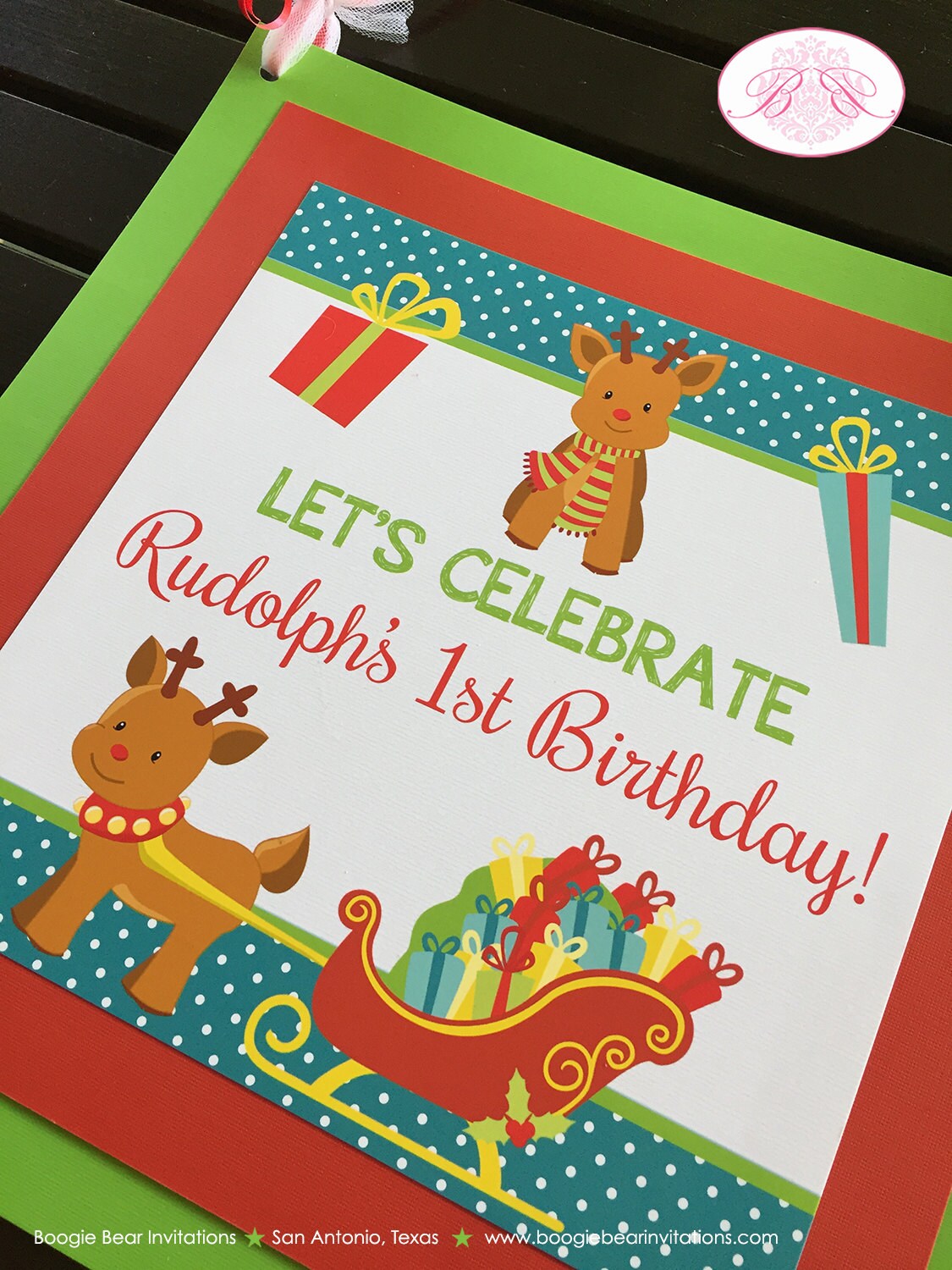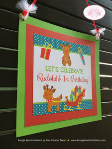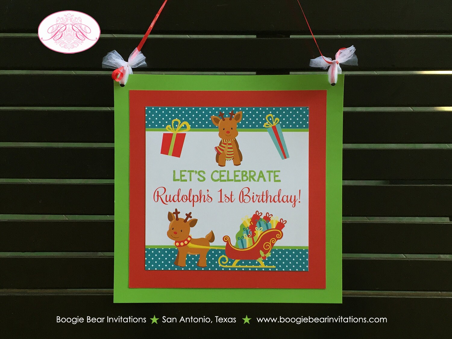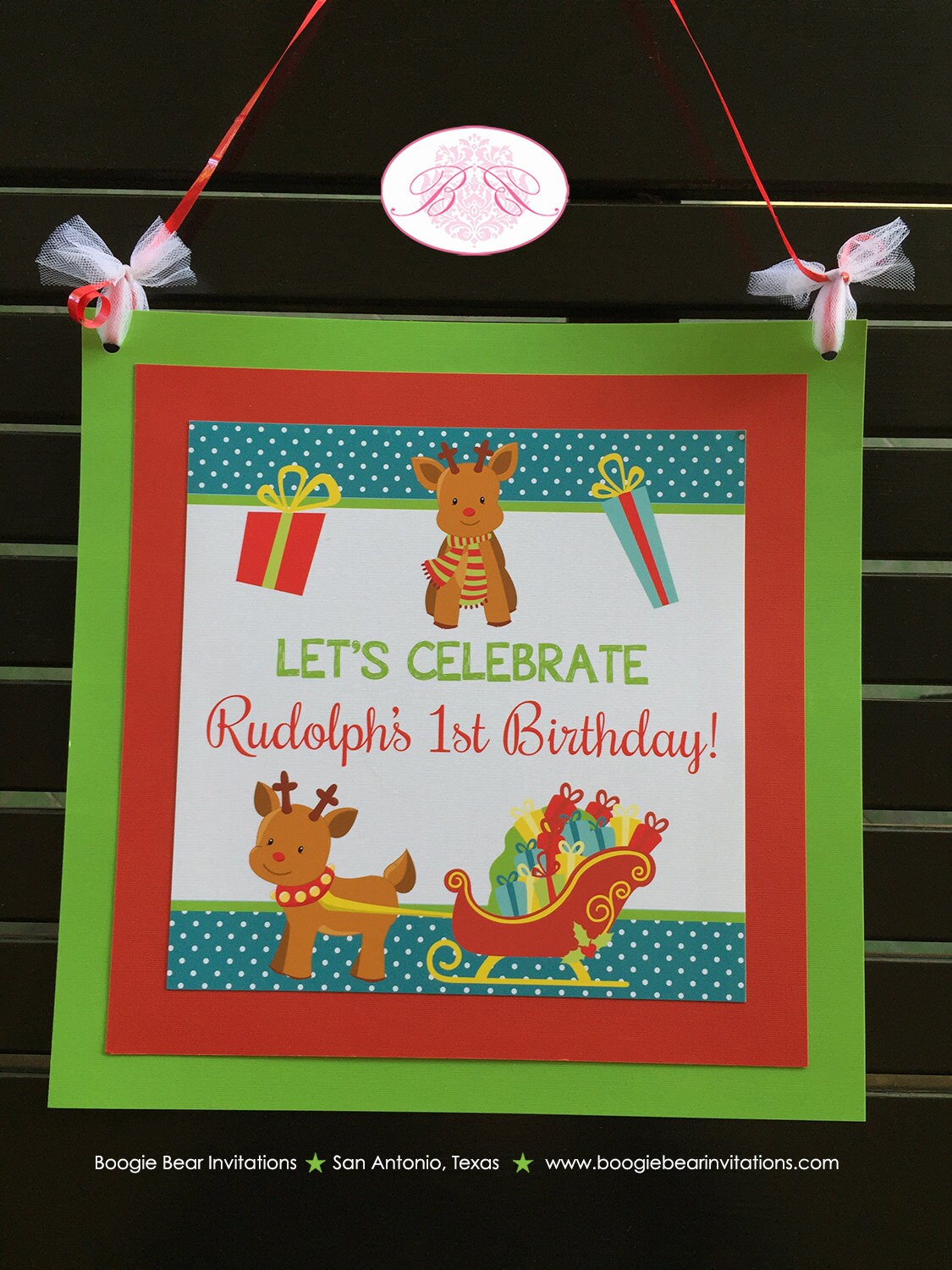 This fantastic door banner sign is part of the "Rudolph" party theme.