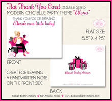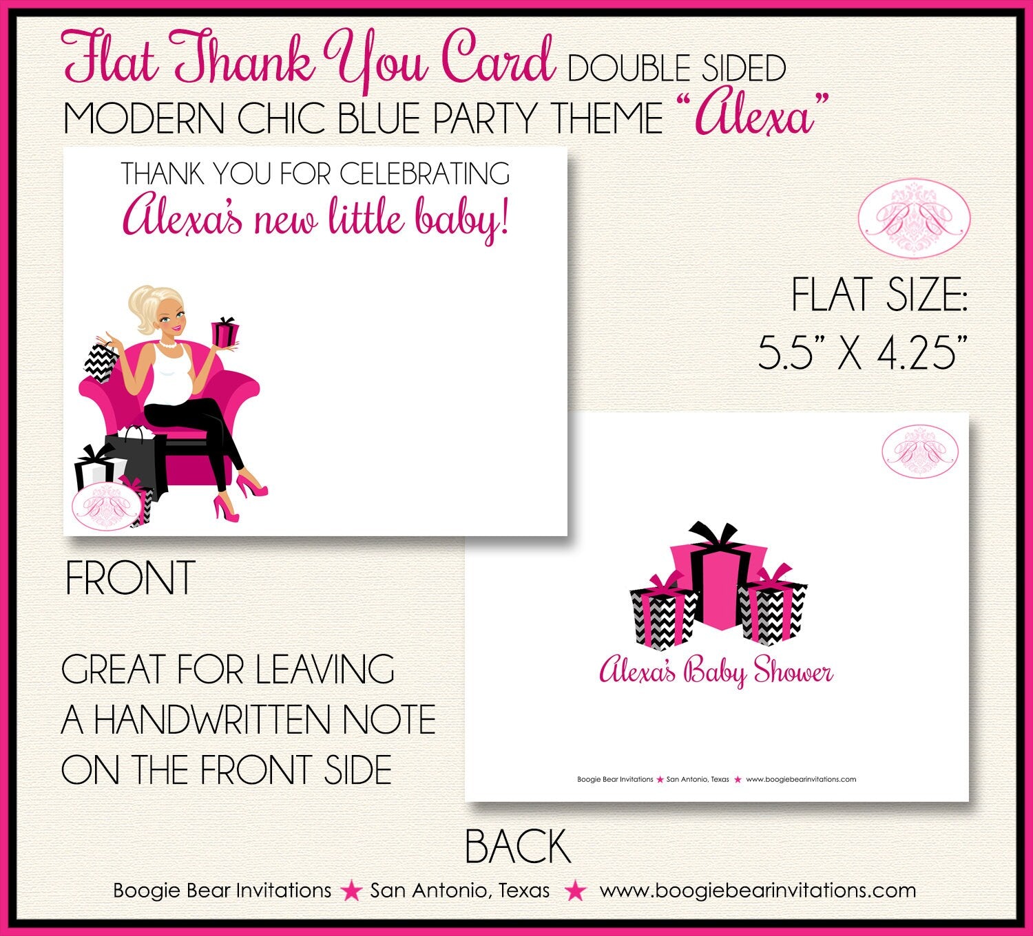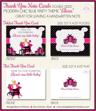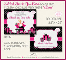 Let's celebrate! These gorgeous thank you cards come with your personalized text for a beautiful pink and black shower party. White envelopes included.