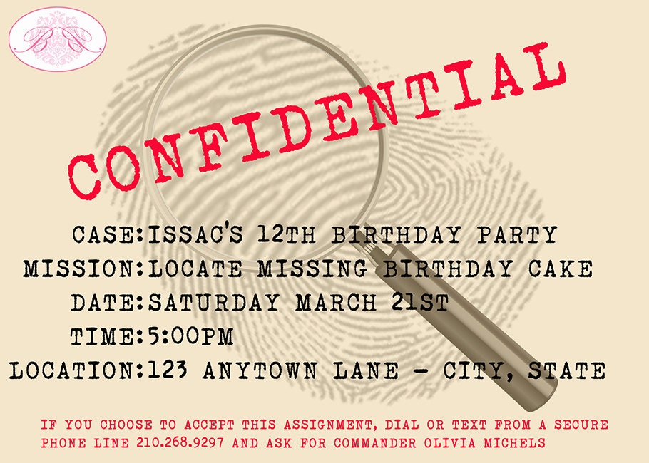 This message will not self destruct! This cool mystery party invitation comes with your personal party text for a fun top secret mission party. Choose our popular Paperless Printable option or let us professionally print and mail your party invitations right to your door.