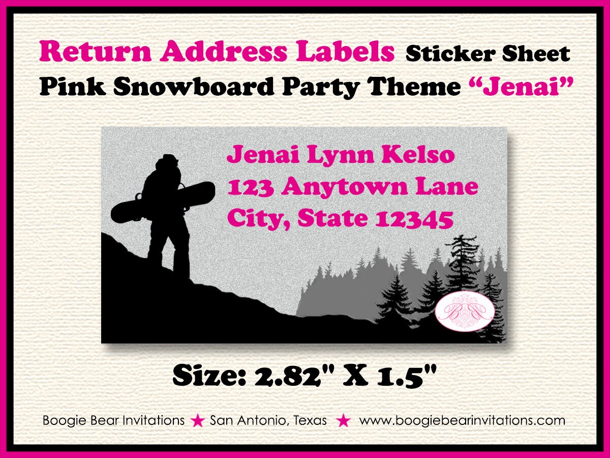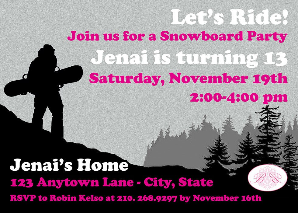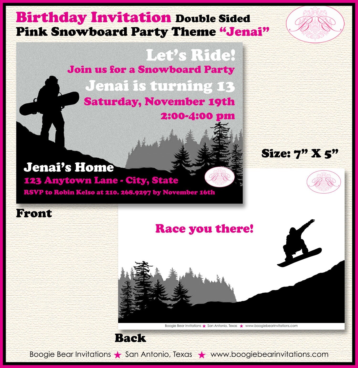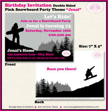 Let's ride! This awesome party invitation features your personal party text for a cool pink snowboarding party. The matching return address labels are great for coordinating your fun party theme. (see photo 3)