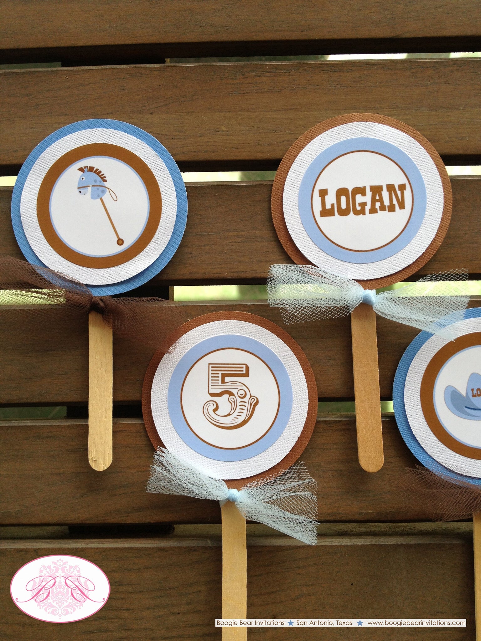 Saddle up for a cowboy party in the Wild West! This adorable party package features your personal party text for a super cute blue cowboy party. Your little honoree will love this amazing personalized party package!